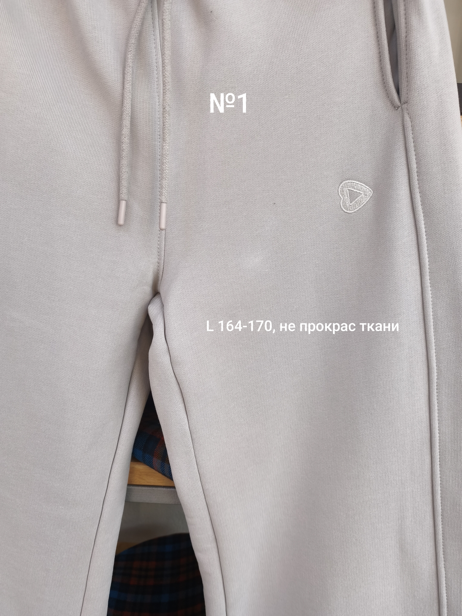 - №1 L на рост 164-170 - единственный дефект это небольшой непрокрас ткани на лицевой стороне левой брючины. (см.фото - выбеленный фрагмент)